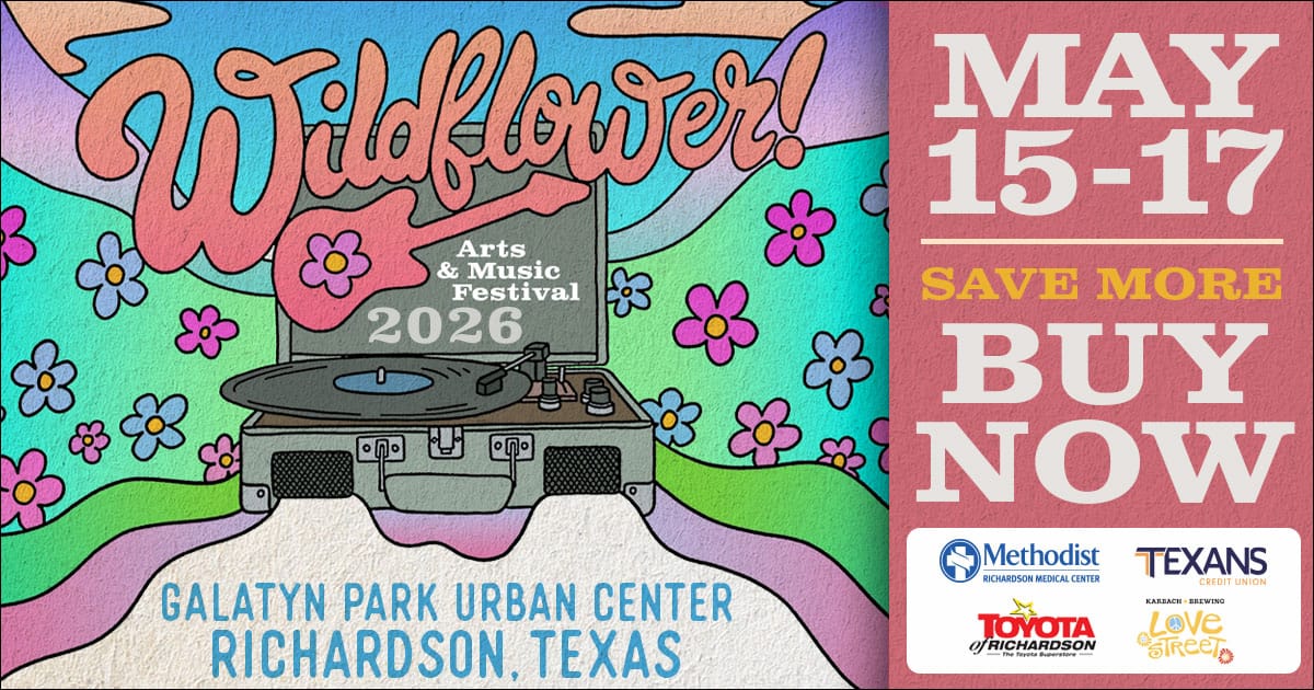 Wildflower! Arts & Music Festival returns May 15–17 to Galatyn Park Urban Center in Richardson. See George Thorogood and the Destroyers, Justin Moore, KALEO, Tonic, Blues Traveler, and more—plus art, shopping, and interactive experiences - all in one wild weekend!